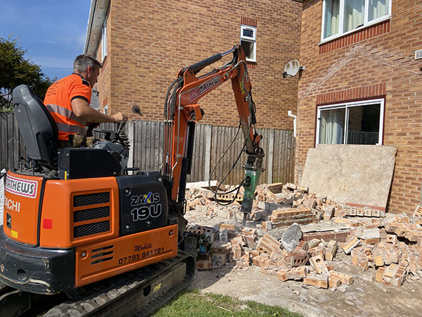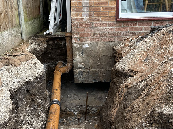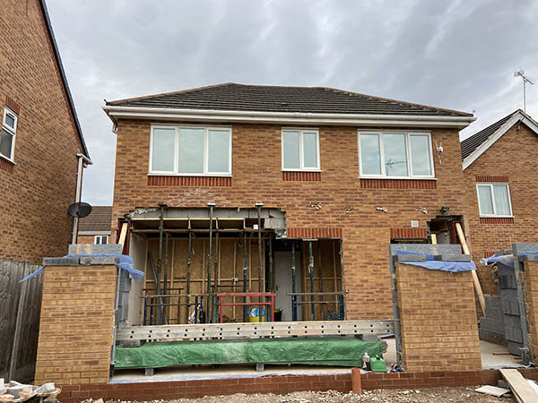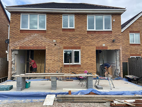 The entire back of the house would need propping up during this process. First-floor joists were strengthened and supported, and internal dividing walls were removed. Three small spaces transformed into one large open plan kitchen / dining room and living area.