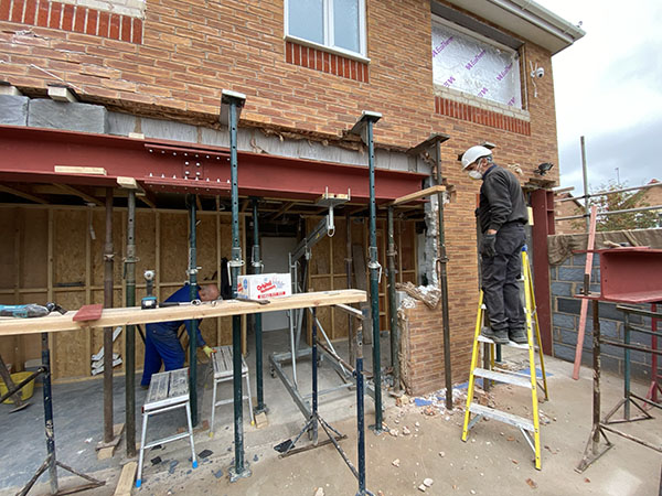 For the design to work, a large, goal-post steel structure would need to be installed. Columns would need anchoring to underpinned foundations, and a steel beam bolted together in 3 sections across the entire building width.